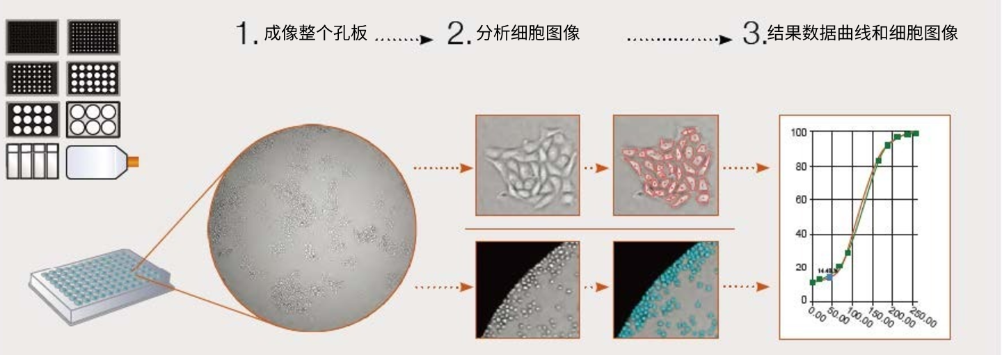 軟件以工作流程為基礎(chǔ),具有直觀的界面,可同時成像和分析;提供動態(tài)分析,例如多時間點拍攝生長追蹤,細胞群進行類流式設(shè)門分析和細胞群統(tǒng)計報告。可用彩色疊加圖顯示特定細胞群的細胞圖像。