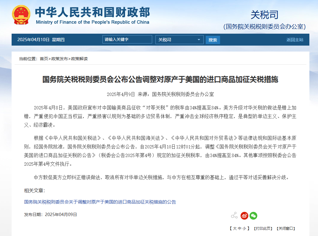 2025年4月9日,就在美國對中國商品加征104%關(guān)稅正式生效的同一天,中國財(cái)政部發(fā)布重磅聲明:自4月10日起,所有美國進(jìn)口商品將面臨84%的關(guān)稅懲罰,相較此前34%的稅率大幅提升。疊加此前對創(chuàng)新藥、醫(yī)療器械等領(lǐng)域的多輪關(guān)稅調(diào)整,生物醫(yī)藥產(chǎn)業(yè)供應(yīng)鏈穩(wěn)定性遭受沖擊,成本壓力與市場不確定性驟增。