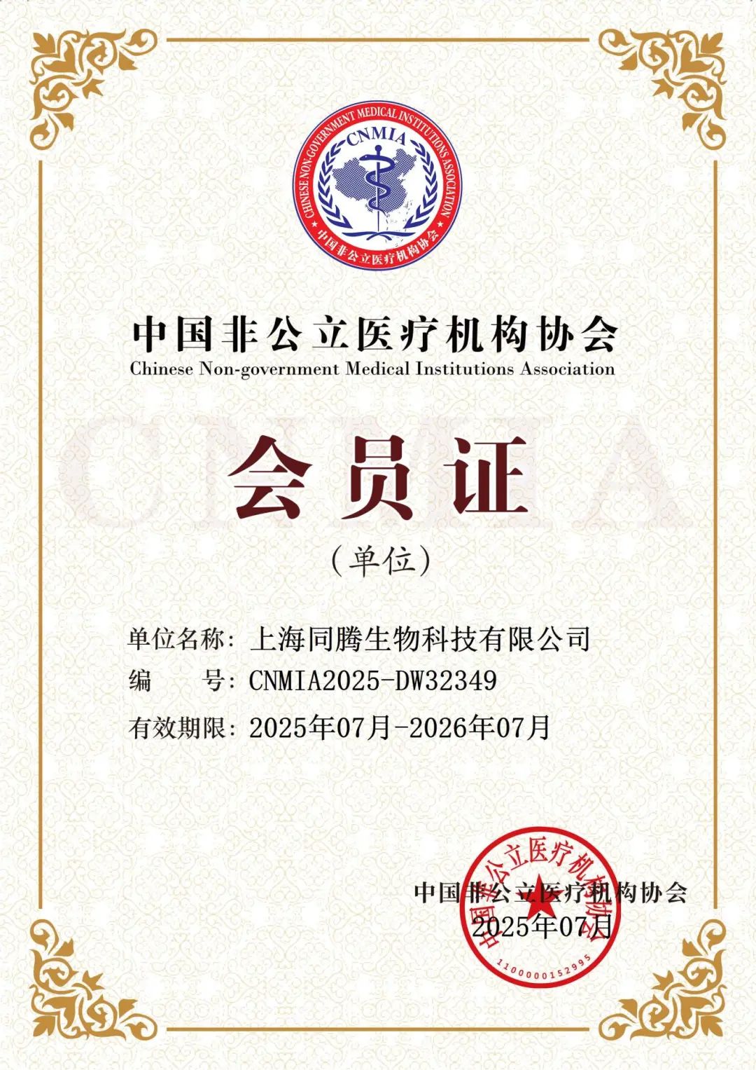 近日,上海同騰生物科技有限公司正式獲批成為中國非公立醫(yī)療機構協(xié)會會員單位。這一重要里程碑,標志著同騰生物在深化行業(yè)協(xié)同、助力非公立醫(yī)療事業(yè)高質量發(fā)展的進程中邁出了堅實一步。